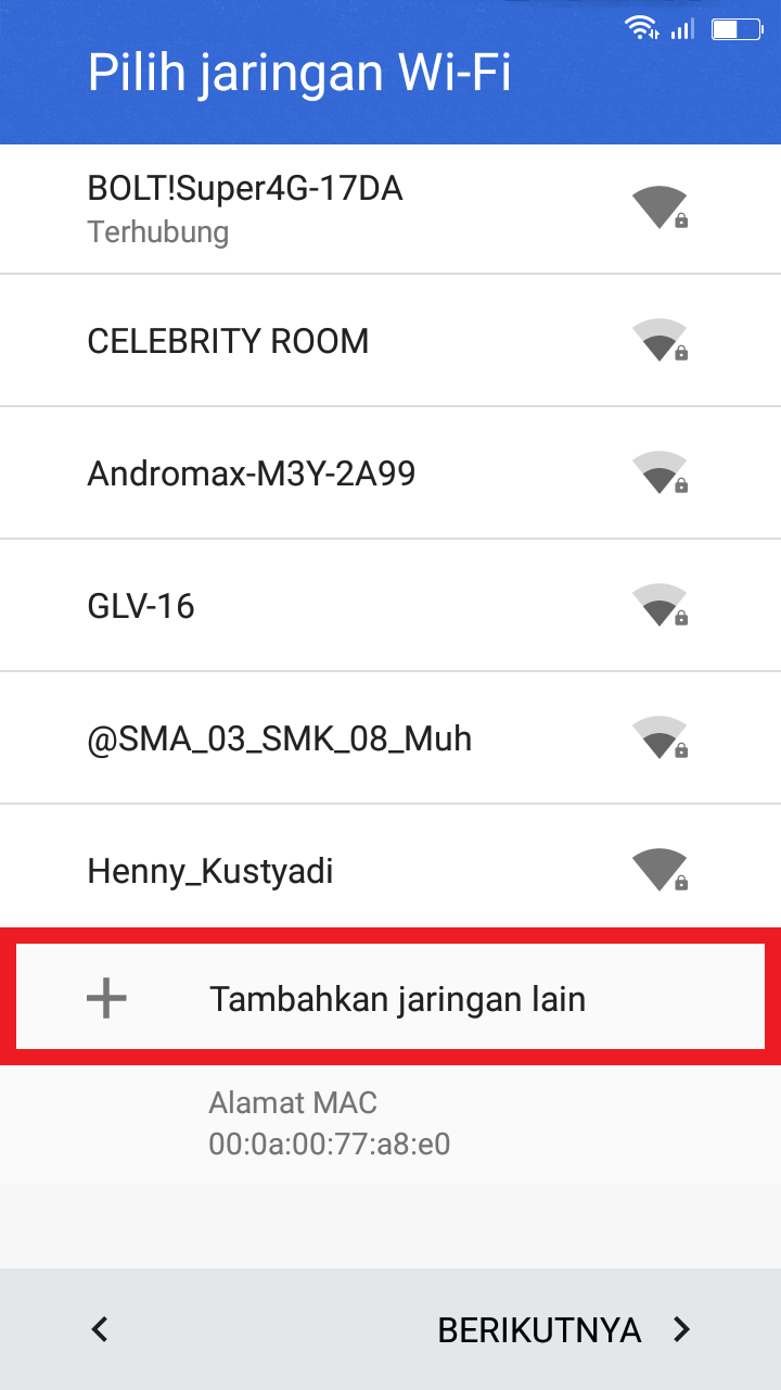 3. Tekan tombol ‘kembali’ untuk menuju ke pemilihan wifi.