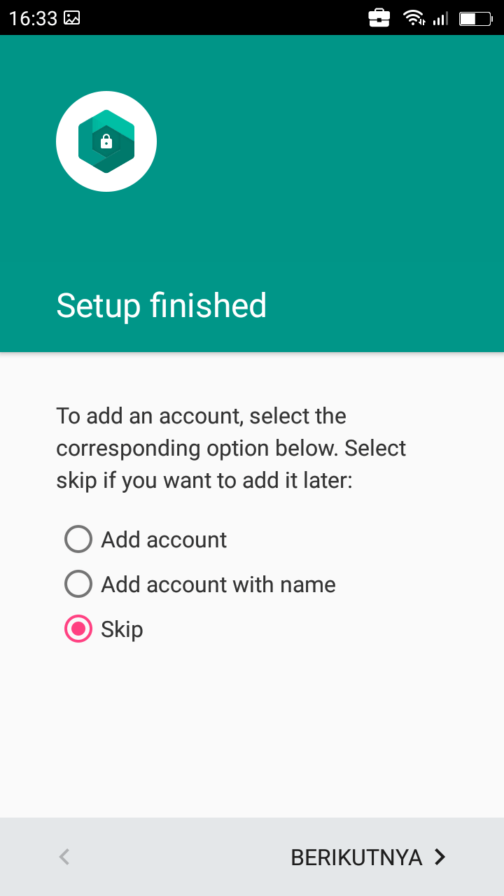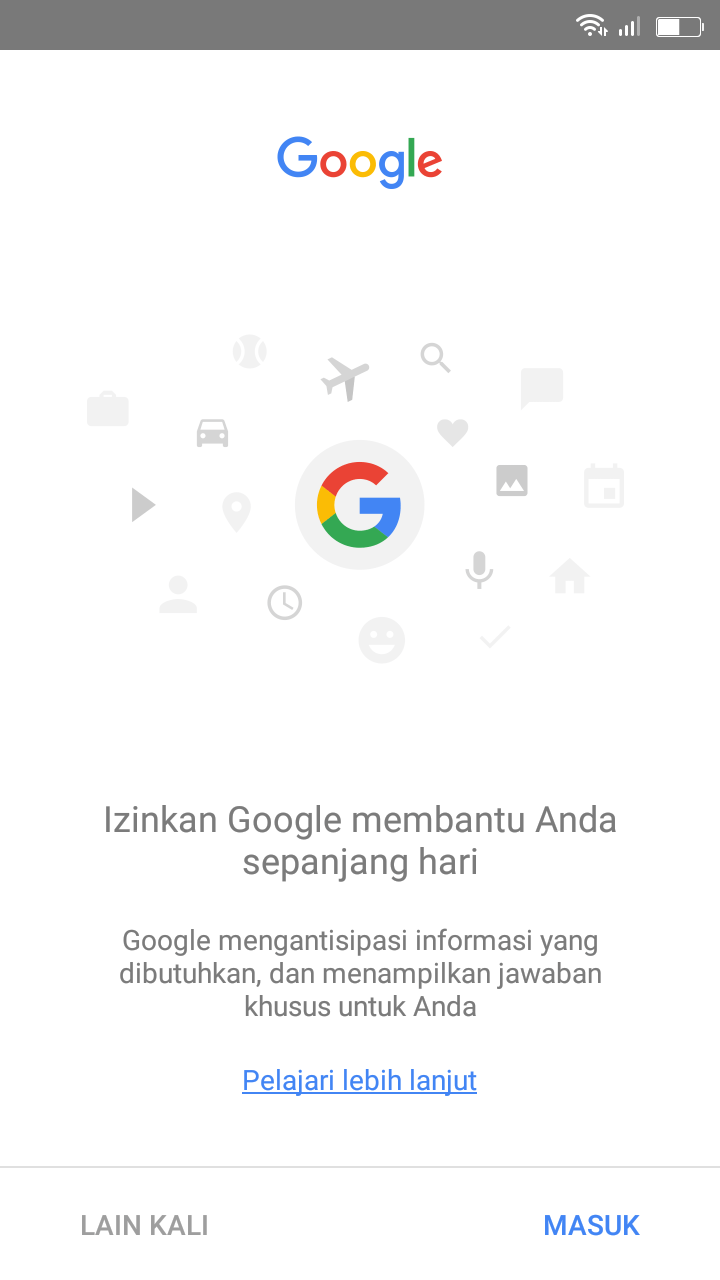 9. Setelah keluar dari UC Broser, pilih berikutnya untuk melanjutkan ke tahap google verifikasi sampai muncul jendela Belum masuk.