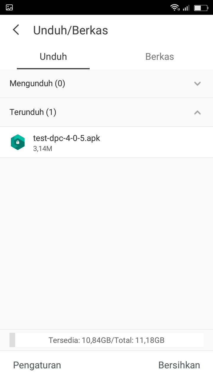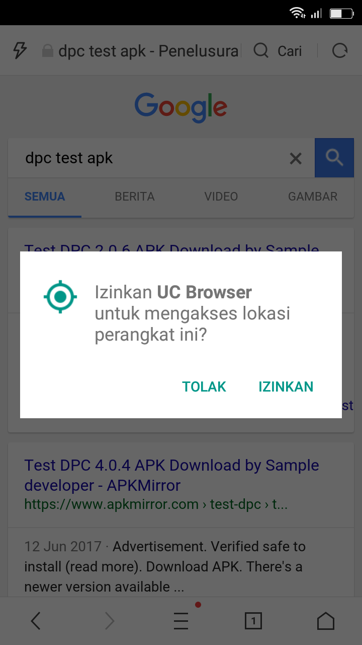 7. Setelah di download, install APK tersebut. Jika muncul pemasangan dicekal, Anda pilih setelan, lalu aktifkan sumber tidak dikenal. Setelah itu kembali lagi ke UC Browser, dan install DPC Test apk.