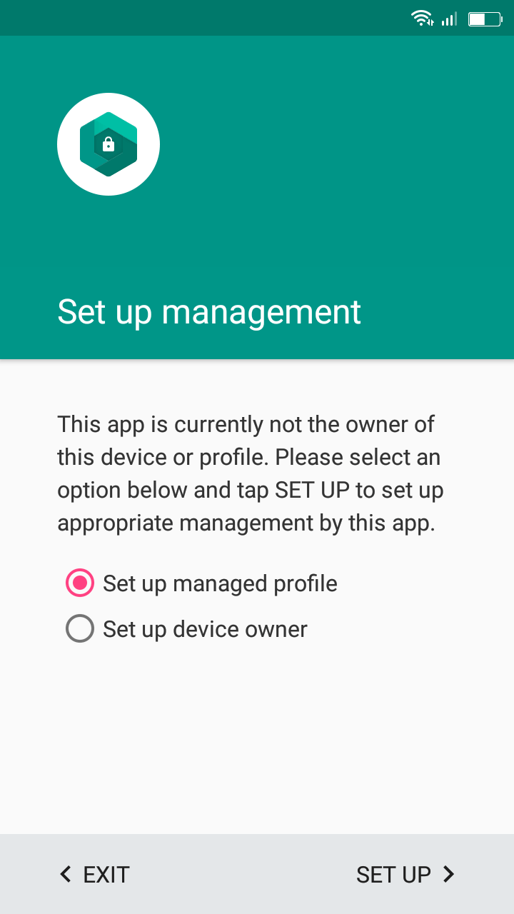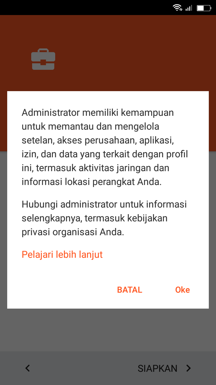 8. Jika sudah terinstall, buka aplikasi DPC Test. Setelah terbuka, pilih Set up managed profile lalu pilih set up, setelah itu pilih siapkan, saat muncul jendela baru, pilih oke. Dari sini Anda hanya perlu menunggu sampai aplikasi keluar sendiri dan keluar dari UC Browser.