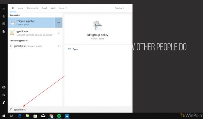 - Pertama kamu ketikan gpedit.msc pada Run Command atau di Start Menu Windows 10.
