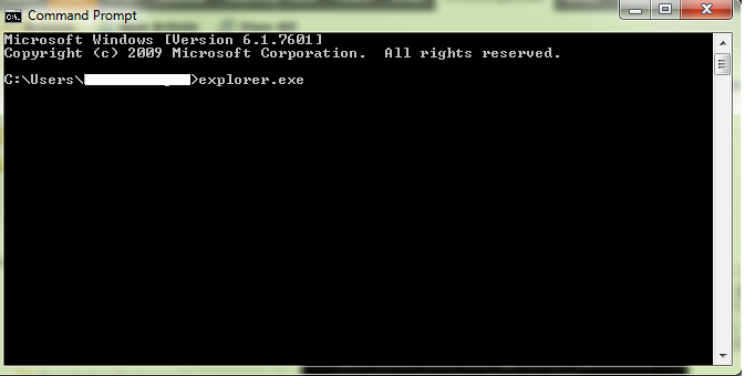 - Di command prompt, ketik ‘explorer.exe’ tanpa tanda kutip untuk membuka file explorer. Lalu Ketik Enter.
