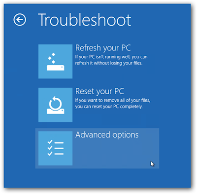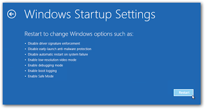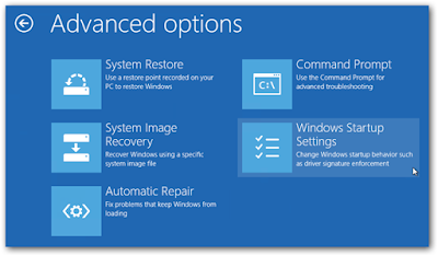 - Klik Troubleshoot, lalu klik Advanced Options, kemudian klik Startup Settings.