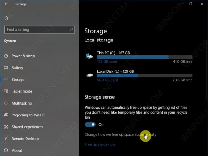 - Pada panel kanan, klik opsi Change how we free up space automatically.