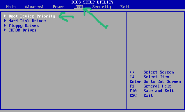 - Jika menggunakan CD ROOM, maka pilih CD ROOM pada 1st Boot Device.